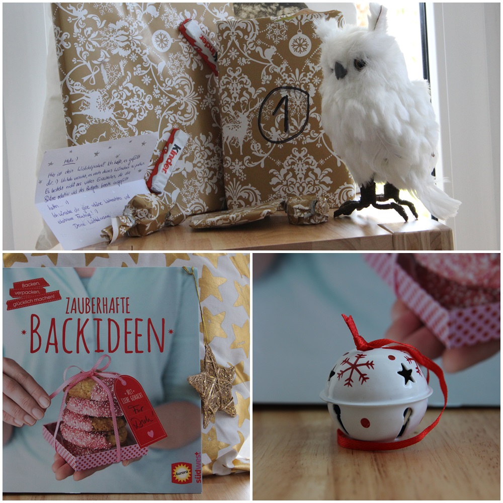 Noch ein Bild von den eingepackten Geschenke, die ich bekommen habe | Buch Nr. 1 mit Backideen | kleines Weihnachtsglöckchen |