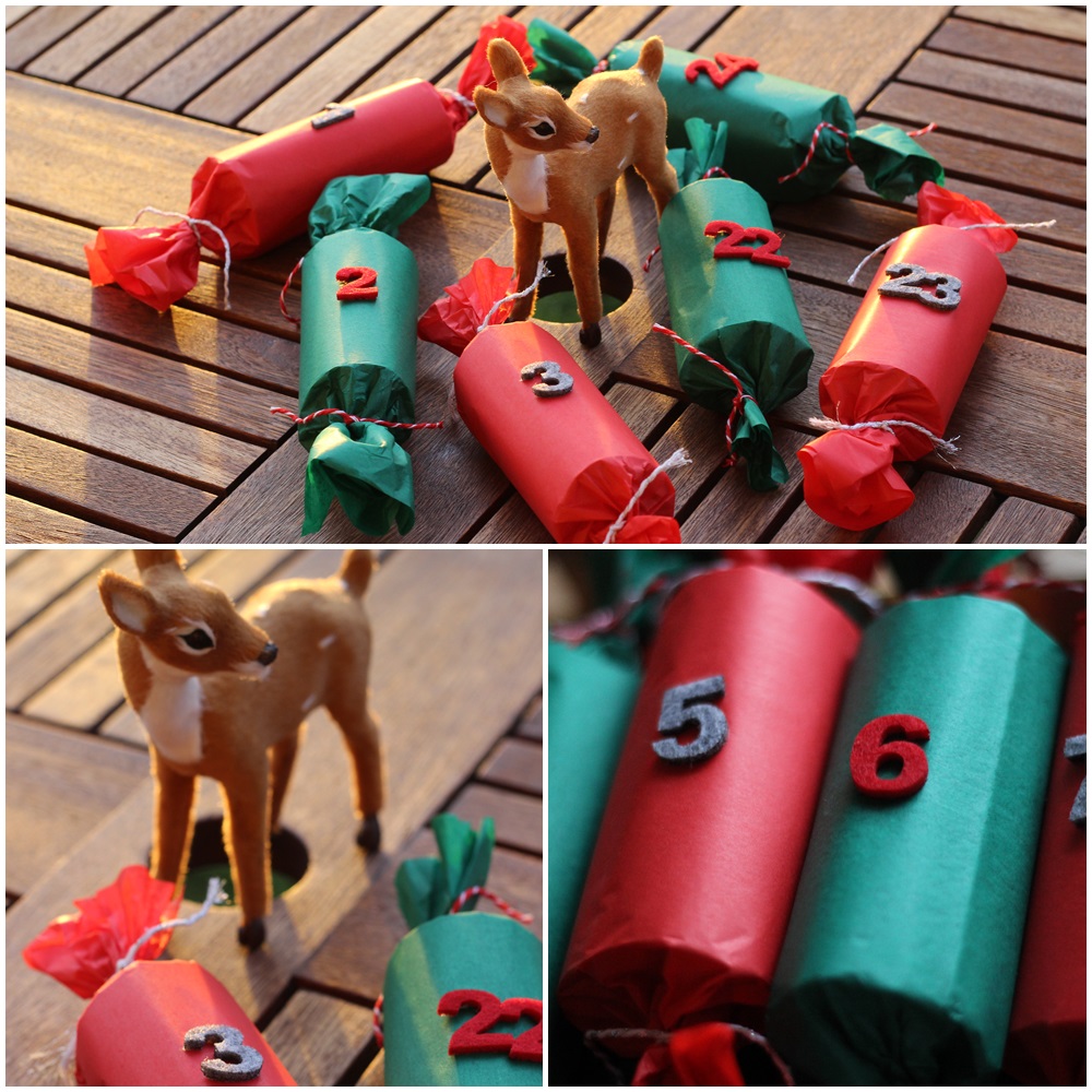 Ich habe bereits in den vergangenen beiden Jahren als Geschenk eine Adventskalender selbst gebastelt. Dieses Jahr war meine Idee, die kleine Geschenke in Klorollen zu verpacken. Ich habe also frühzeitig damit begonnen, Klorollen zu sammeln. Leider nicht früh genug, denn als ich meinen Bastelnachmittag eingelegt habe, haben mir 4 Klorollen gefehlt. Da ich unbedingt den gesamten Kalender auf einmal erstellen wollte, habe ich mich spontan entschieden, aus Karton und mit Hilfe von Klebeband selbst Rollen zu basteln. Das hat ziemlich gut geklappt.
