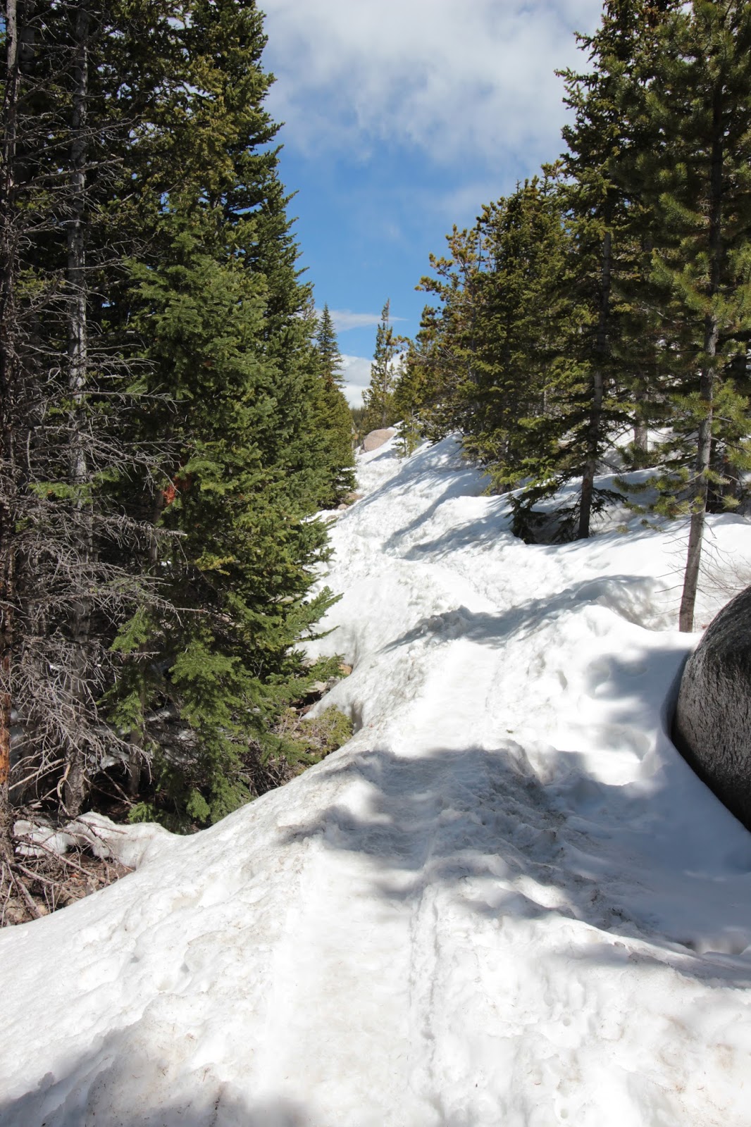 Der Rocky Mountain Nationalpark ist nur ca. 10 Minuten von unserer Unterkunft entfernt. Was für eine Erleichterung im Vergleich zu Yellow Stone. Aufgrund der Beratung durch einen Ranger sind wir mit dem Auto zum Bear Lake gefahren, um von dort zu den Alberta Falls und zum Mills Lake zu wandern. Die Tour war wirklich super schön, aber auch extrem anstrengend, da zu großen Teilen Schnee lag und man in den weichen Frühjahrssulz eingesunken ist. Außerdem ging es teilweise über Stock und Stein und durch Flussbette. Auch fand die Wanderung auf über 3.000 m statt. Die Höhenluft ist der Kondition nicht gerade zuträglich, aber zumindest habe ich keine Anzeichen der Höhenkrankheit gespürt. Ein wichtiger Hinweis: wir befanden uns trotzdem unterhalb der Baumgrenze!!! Die ist in Nordamerika höher als in Europa. Darauf kann man nicht oft genug hinweisen (Eurosport-Insider mit lieben Grüßen an Guido Heuber). Zum Schluss sind wir sogar über einen Gletscher gewandert. Das war auch der Grund, warum wir kurz vor dem Ziel (ca. 0,5 km) umgedreht sind, denn die Strecke wurde immer gefährlicher, und wir wussten, dass wir den gesamten schwierigen Weg wieder zurück mussten, denn es war kein Rundwanderweg und der tolle Busservice aus Südtirol oder Oberstdorf ist hier unbekannt. Es gibt zwar Shuttle Busse, aber die decken nur einen Bruchteil ab. Zudem saß uns das wechselhafte Wetter im Nacken, denn für den Nachmittag waren Gewitter angesagt. Wir hatten Glück und das Wetter blieb sonnig. Trotz aller Widrigkeiten war es eine wunderschöne Strecke, die einen Canyon, einen Wasserfall, Mischwald, Streifenhörnchen, einen Gletscher und zum Abschluss den wunderschönen Bear Lake umfasst hat. Außerdem ist uns unterwegs eine Gruppe mit 150 Studenten begegnet. Die Rocky Mountains sind wunderschön, aber wer mich kennt, weiß, mein Herz gehört einem bestimmten Berg. Und daran können auch die Rockies nichts ändern…