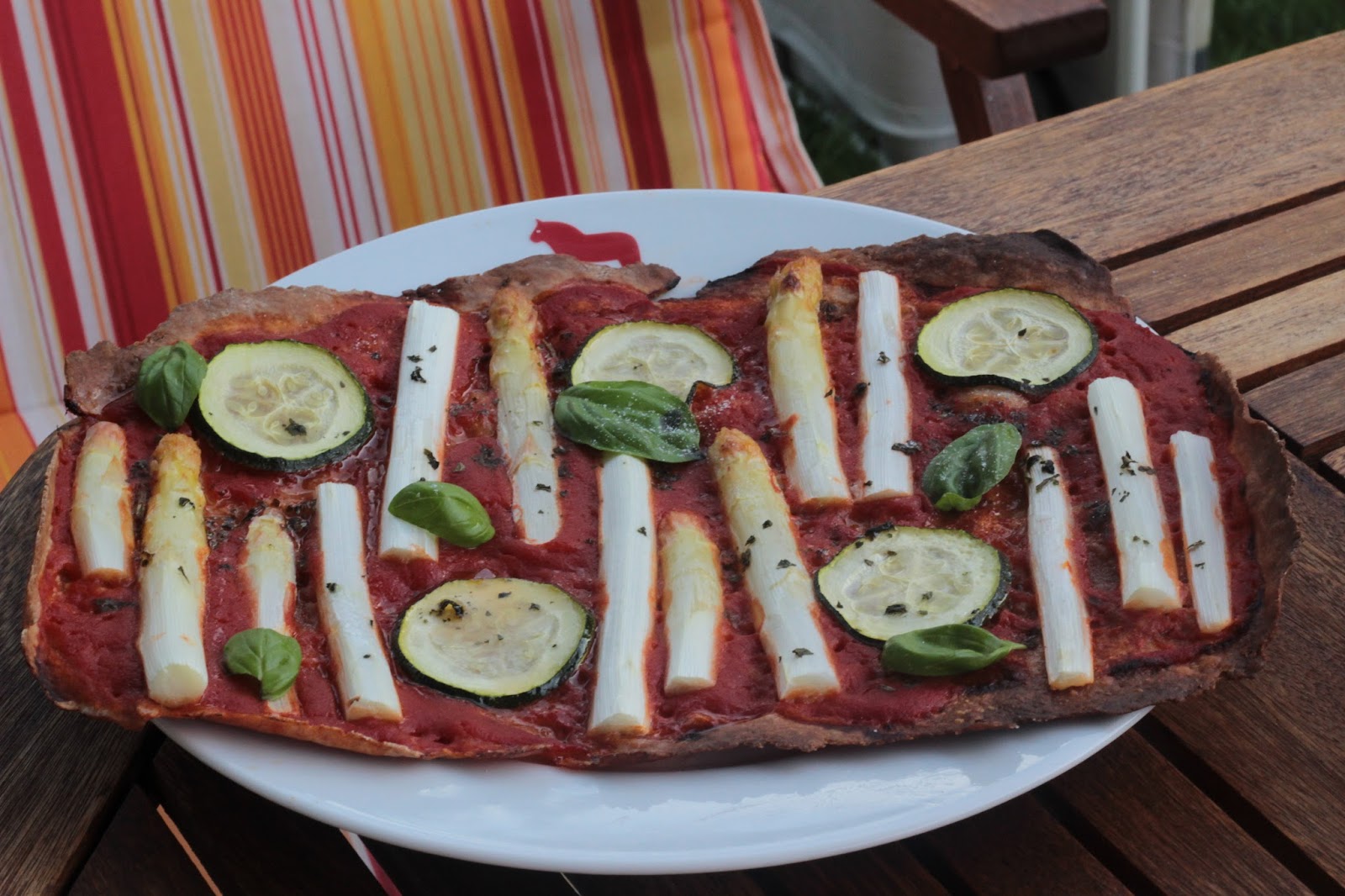 Letzte Woche wurde die Spargelsaison beendet, und es gab die Pizza zum letzten Mal für dieses Jahr mit frischem Spargel: